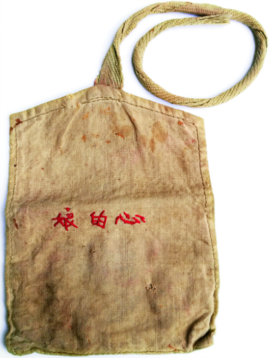 媽媽記掛遠(yuǎn)在陜北農(nóng)村吃苦的兒子,親手縫制了一個(gè)針線包,上面繡了三個(gè)紅色的字:娘的心。