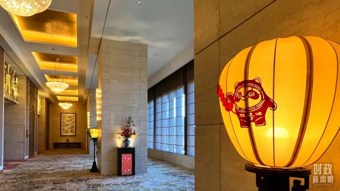 △芳華苑燈罩上印有北京冬奧會吉祥物“冰墩墩”圖案。(總臺央視記者王策拍攝)