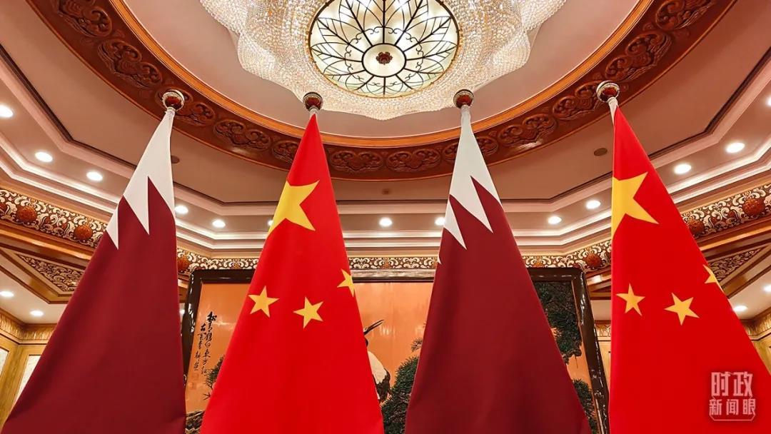 △卡塔爾國旗與五星紅旗。(總臺央視記者楊立峰拍攝)