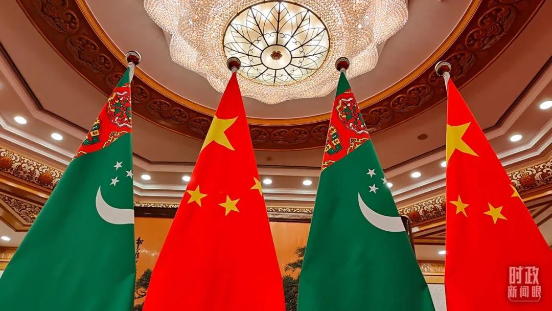 △土庫曼斯坦國旗與五星紅旗。(總臺央視記者楊立峰拍攝)