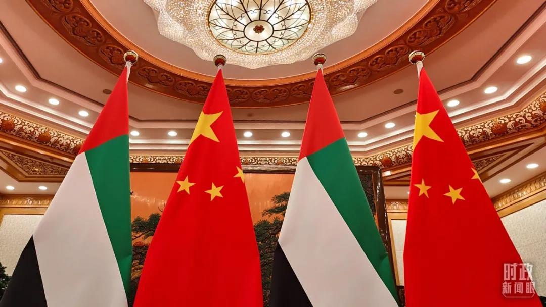 △阿拉伯聯(lián)合酋長國國旗與五星紅旗。(總臺央視記者楊立峰拍攝)