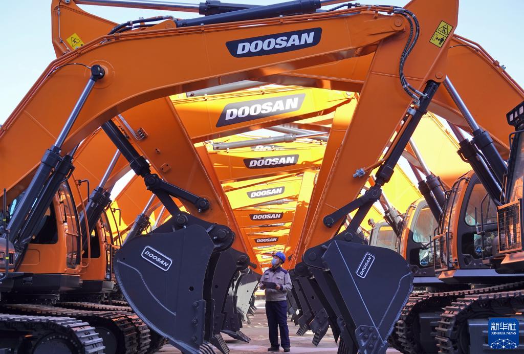 1月17日,在山東煙臺(tái)開發(fā)區(qū)一家工程機(jī)械有限公司,工作人員對(duì)出廠車輛進(jìn)行檢查。新華社發(fā)(唐克 攝)