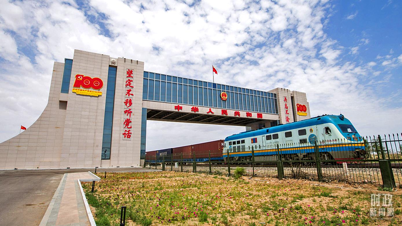 △2021年7月,一列中歐班列駛?cè)攵B浩特國(guó)門。(圖/視覺(jué)中國(guó))