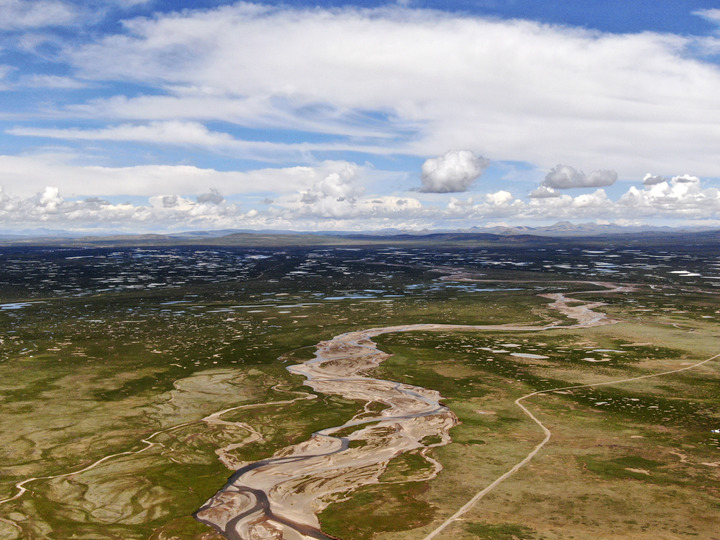 這是2021年7月23日拍攝的長(zhǎng)江南源當(dāng)曲(無(wú)人機(jī)照片)。新華社記者 張龍 攝