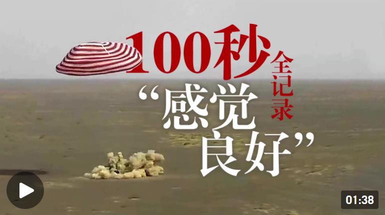 100秒全記錄神十三重返地球之旅:感覺良好,歡迎回家?。ň帉В悍?張卓雅)