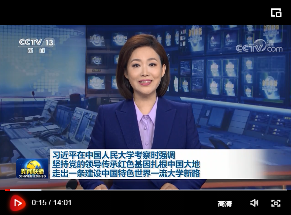 在五四青年節(jié)即將到來之際,中共中央總書記、國家主席、中央軍委主席習近平25日上午來到中國人民大學考察調(diào)研。習近平代表黨中央,向全國各族青年致以節(jié)日的祝賀,向中國人民大學全體師生員工、向全國廣大教育工作者和青年工作者致以誠摯的問候。習近平希望全國廣大青年牢記黨的教誨,立志民族復興,不負韶華,不負時代,不負人民,在青春的賽道上奮力奔跑,爭取跑出當代青年的最好成績!
