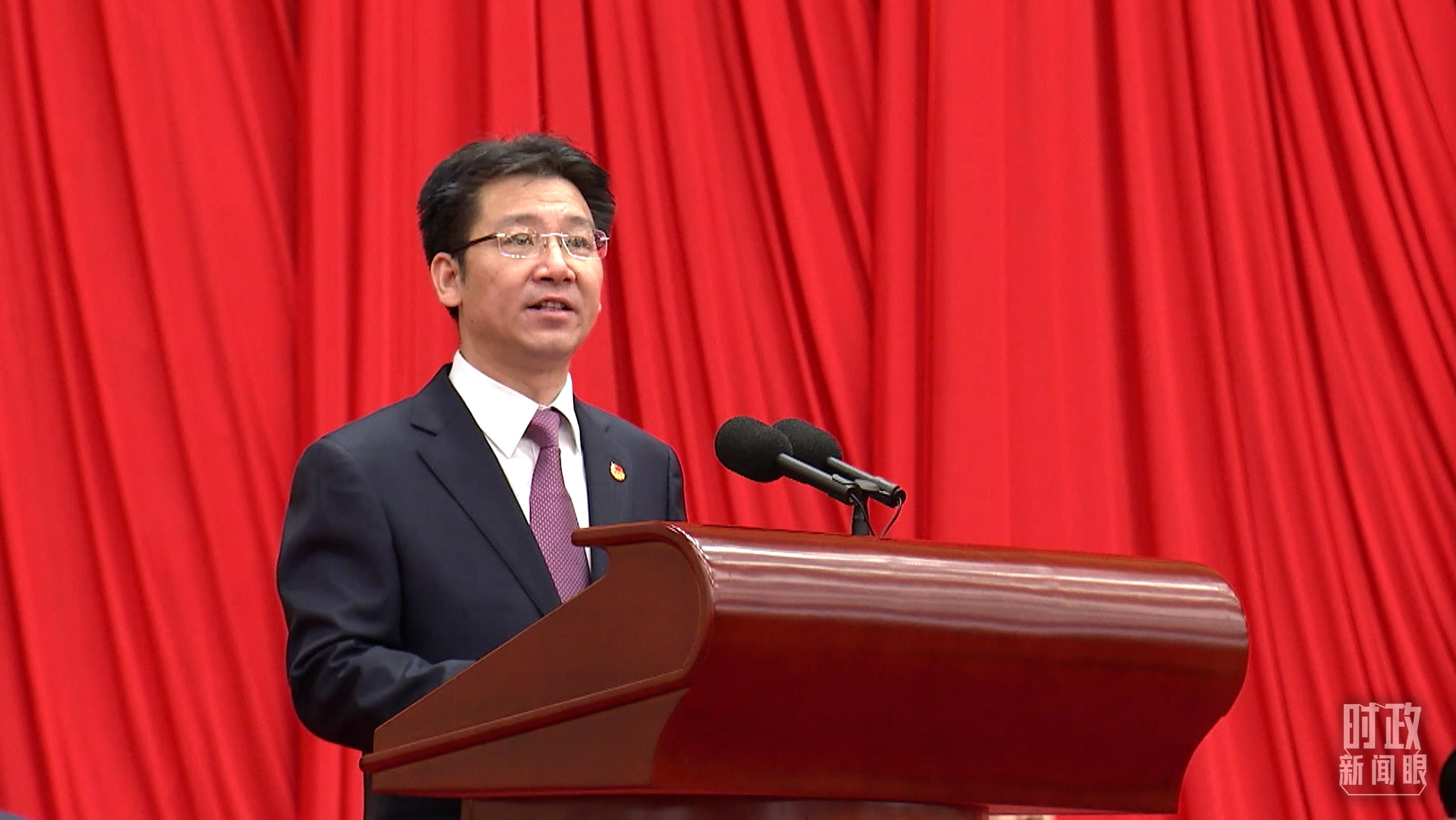△共青團(tuán)中央書記處第一書記賀軍科在大會(huì)上發(fā)言。(總臺(tái)央視記者 張曉鵬拍攝)