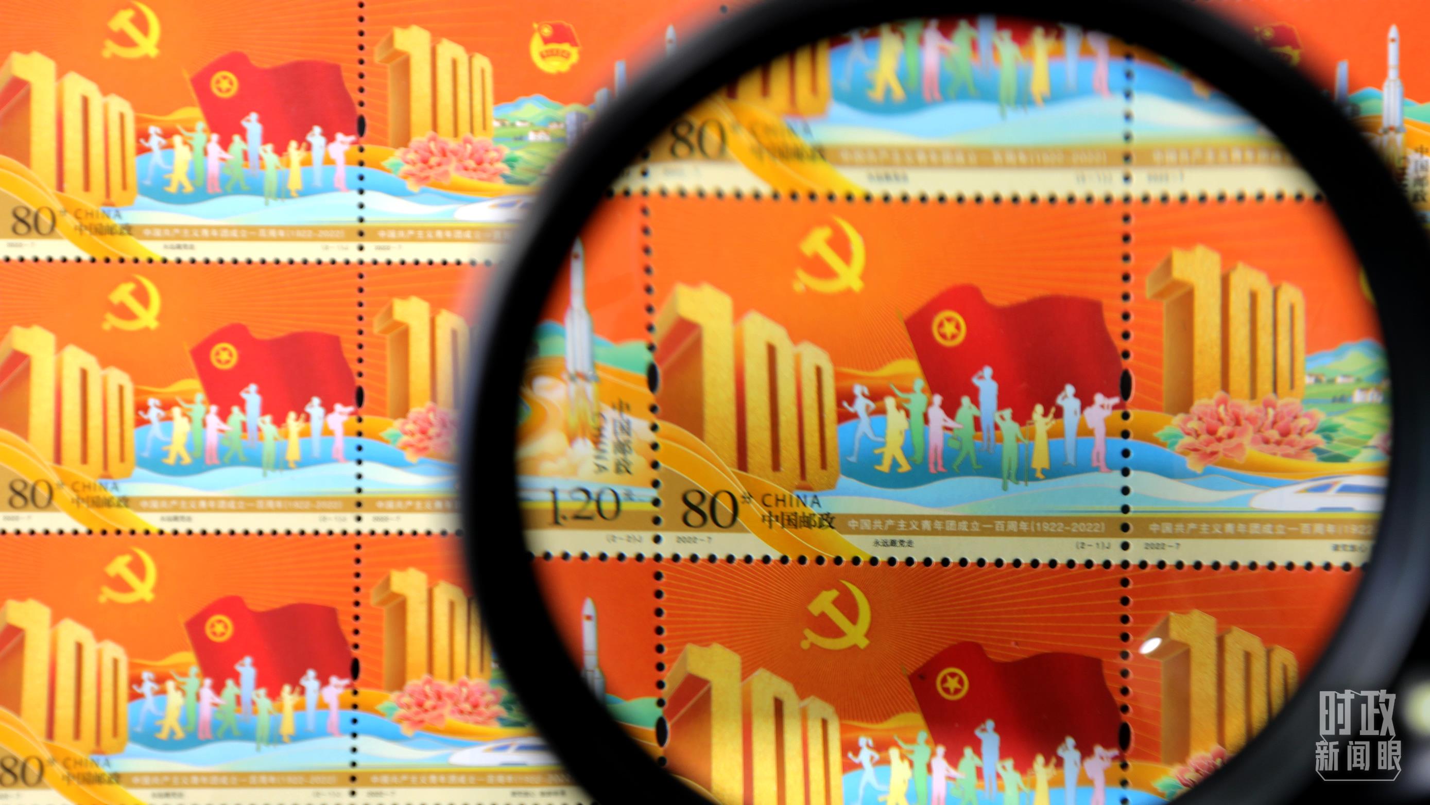 △2022年5月,中國(guó)郵政發(fā)行《中國(guó)共產(chǎn)主義青年團(tuán)成立一百周年》紀(jì)念郵票。(圖丨視覺中國(guó))