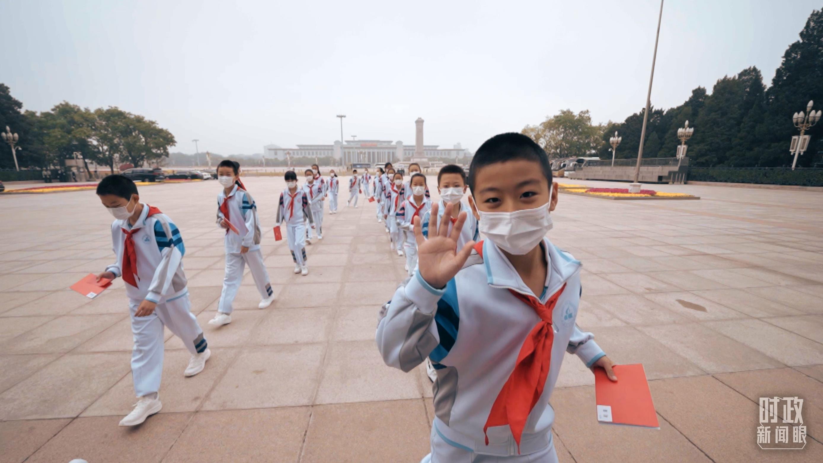 △北京市中小學(xué)生代表走入會(huì)場(chǎng)。(總臺(tái)央視記者 彭漢明拍攝)