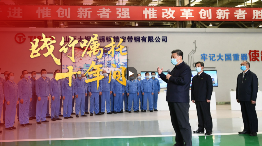 太鋼人時?;貞浧鹆暯娇倳?020年5月來考察時的情景。那一天,在轟鳴的車間,總書記拿起一片“手撕鋼”——厚度僅為0.02毫米的不銹鋼箔材仔細察看,用手指輕輕扭折了一下,稱贊道:“工藝確實好,就像錫紙一樣薄,百煉鋼做成了繞指柔。”