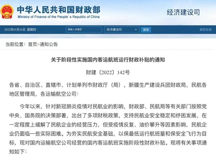 記者26日了解到,財(cái)政部、民航局日前發(fā)布通知,自2022年5月21日至2022年7月20日,對國內(nèi)運(yùn)輸航空公司經(jīng)營的國內(nèi)客運(yùn)航班實(shí)施階段性財(cái)政補(bǔ)貼。原則上當(dāng)每周內(nèi)日均國內(nèi)客運(yùn)航班量低于或等于4500班(保持安全運(yùn)行最低飛行航班數(shù))時,啟動財(cái)政補(bǔ)貼。對國內(nèi)客運(yùn)航班實(shí)際收入扣減變動成本后的虧損額給予補(bǔ)貼。設(shè)定最高虧損額補(bǔ)貼標(biāo)準(zhǔn)上限為每小時2.4萬元。(記者申鋮、周圓)