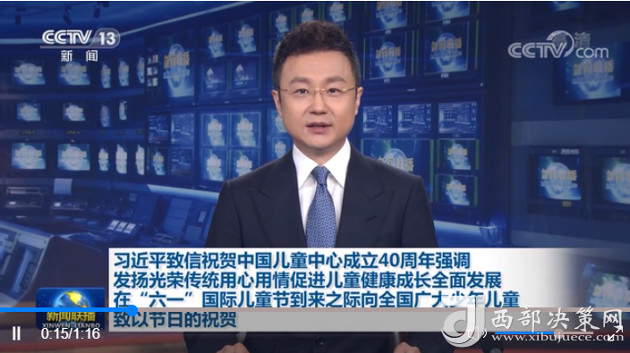 新華社北京5月31日電 在中國兒童中心成立40周年之際,中共中央總書記、國家主席、中央軍委主席習(xí)近平發(fā)來賀信,表示熱烈的祝賀,并在“六一”國際兒童節(jié)到來之際,代表黨中央向全國廣大少年兒童致以節(jié)日的祝賀,祝小朋友們學(xué)習(xí)進(jìn)步、快樂生活、茁壯成長。