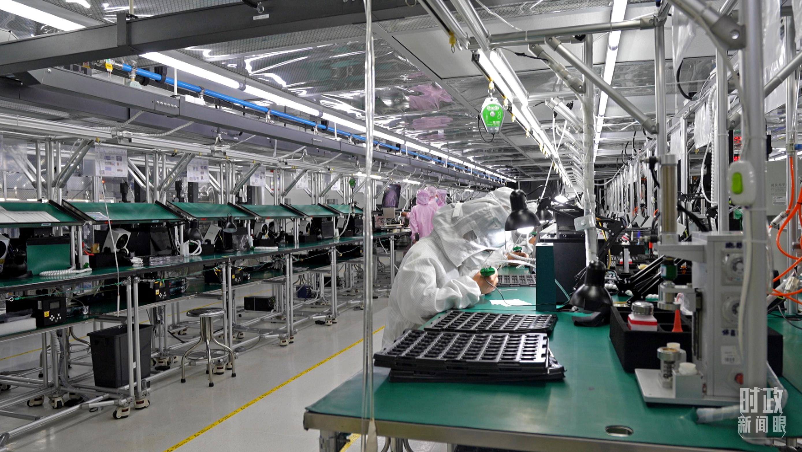 △極米光電有限公司,無塵車間光機(jī)組裝線。(總臺央視記者范學(xué)禹拍攝)