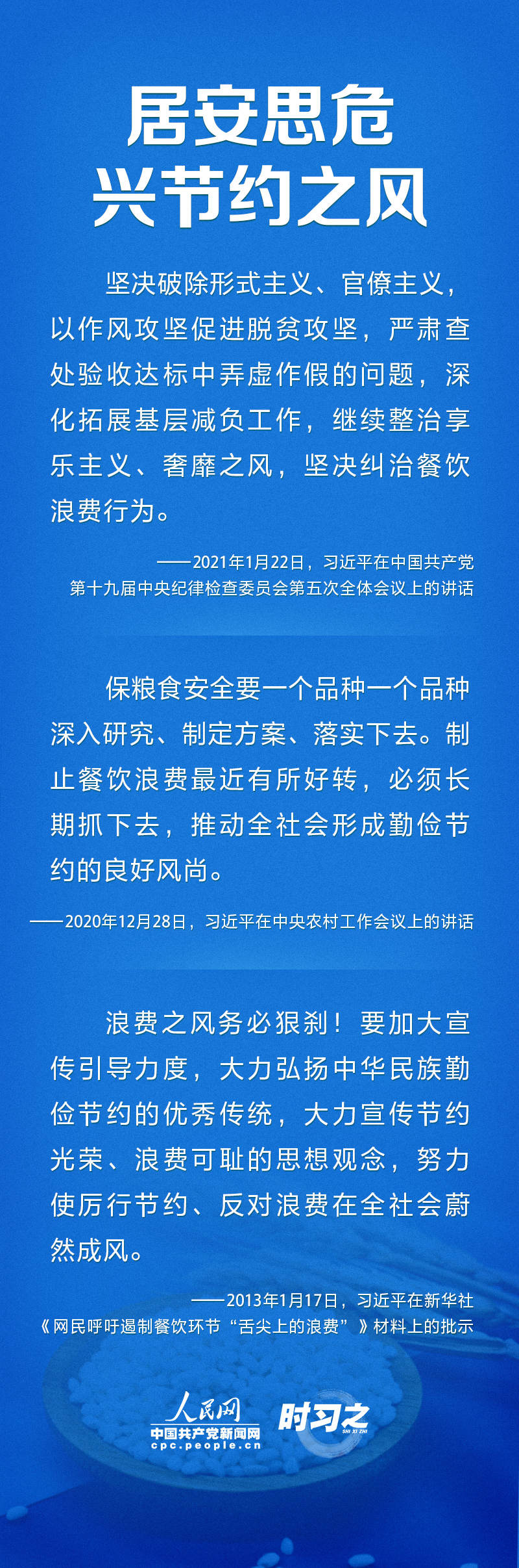 一粥一飯,當(dāng)思來處不易;半絲半縷,恒念物力維艱。“小米粒”牽動(dòng)“大民生”,習(xí)近平總書記一直高度重視糧食安全,提倡“厲行節(jié)約、反對(duì)浪費(fèi)”的社會(huì)風(fēng)尚,多次強(qiáng)調(diào)要制止餐飲浪費(fèi)行為,推動(dòng)建設(shè)節(jié)約型社會(huì)。