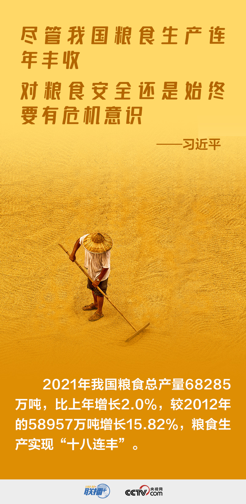 黨的十八大以來,習(xí)近平總書記對(duì)糧食安全這個(gè)“永恒課題”高度重視,時(shí)時(shí)敲響警鐘。央視網(wǎng)《聯(lián)播+》特?cái)X取總書記相關(guān)重要論述,與您一起學(xué)習(xí),始終繃緊“糧食安全”這根弦。
