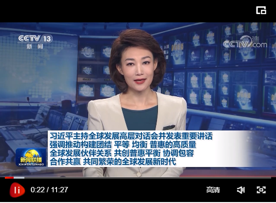 習近平發(fā)表題為《構(gòu)建高質(zhì)量伙伴關(guān)系 共創(chuàng)全球發(fā)展新時代》的重要講話。