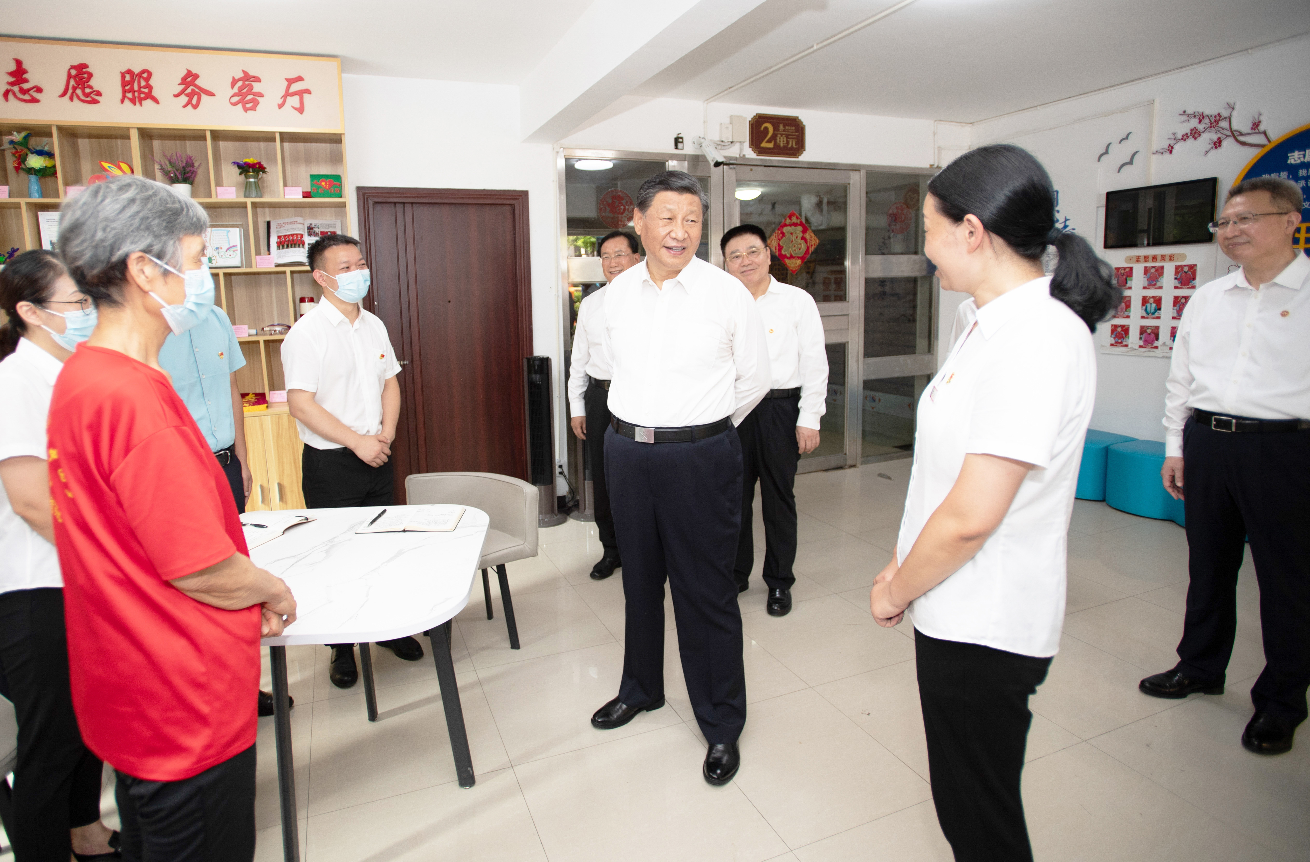 6月28日,中共中央總書記、國家主席、中央軍委主席習近平在湖北省武漢市考察。這是28日下午,習近平在東湖高新區(qū)左嶺街道智苑社區(qū)黨群服務中心,向社區(qū)工作者了解黨建引領基層社區(qū)治理及便民服務等情況,并同前來辦事的老年人親切交談?! ?/p>