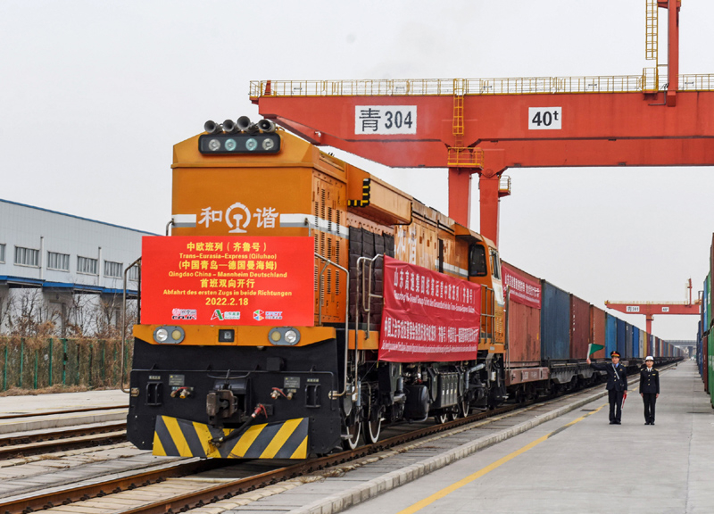 2022年2月18日,中歐班列(齊魯號(hào))中國青島—德國曼海姆雙向?qū)﹂_首班列車從上合示范區(qū)青島多式聯(lián)運(yùn)中心出發(fā)。