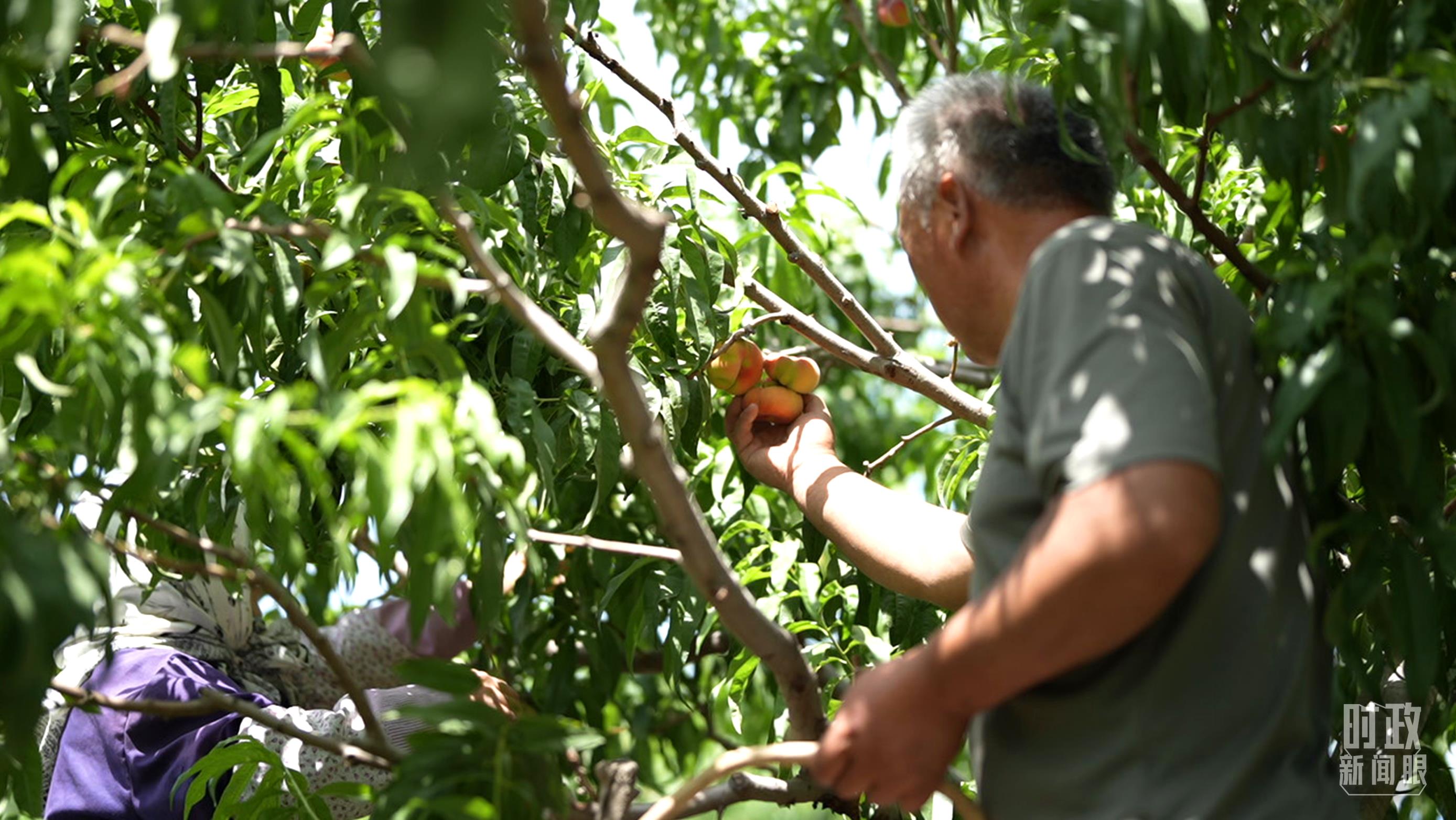 △一四三團(tuán)九連蟠桃園進(jìn)入收獲季節(jié)。(總臺(tái)央視記者楊新禹拍攝)