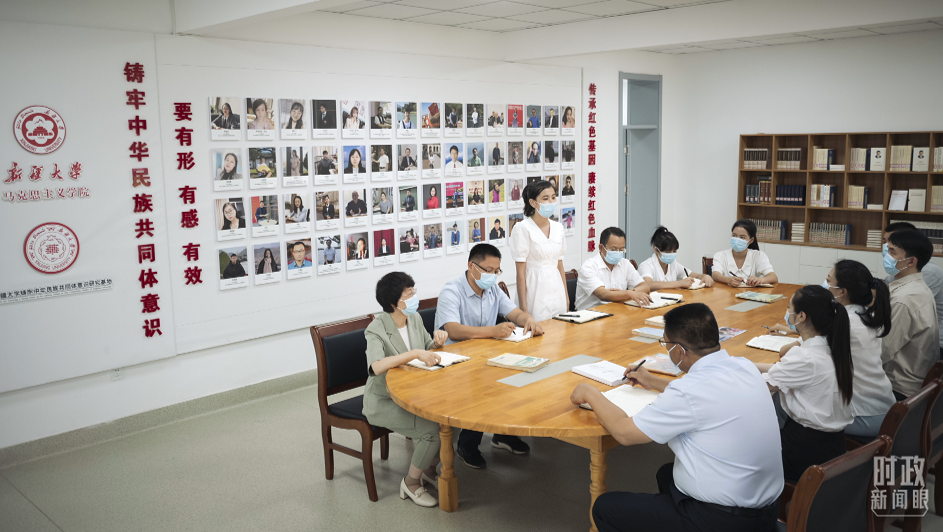 △新疆大學(xué),鑄牢中華民族共同體意識(shí)研究基地的討論現(xiàn)場(chǎng)。(總臺(tái)央視記者王哈男拍攝)