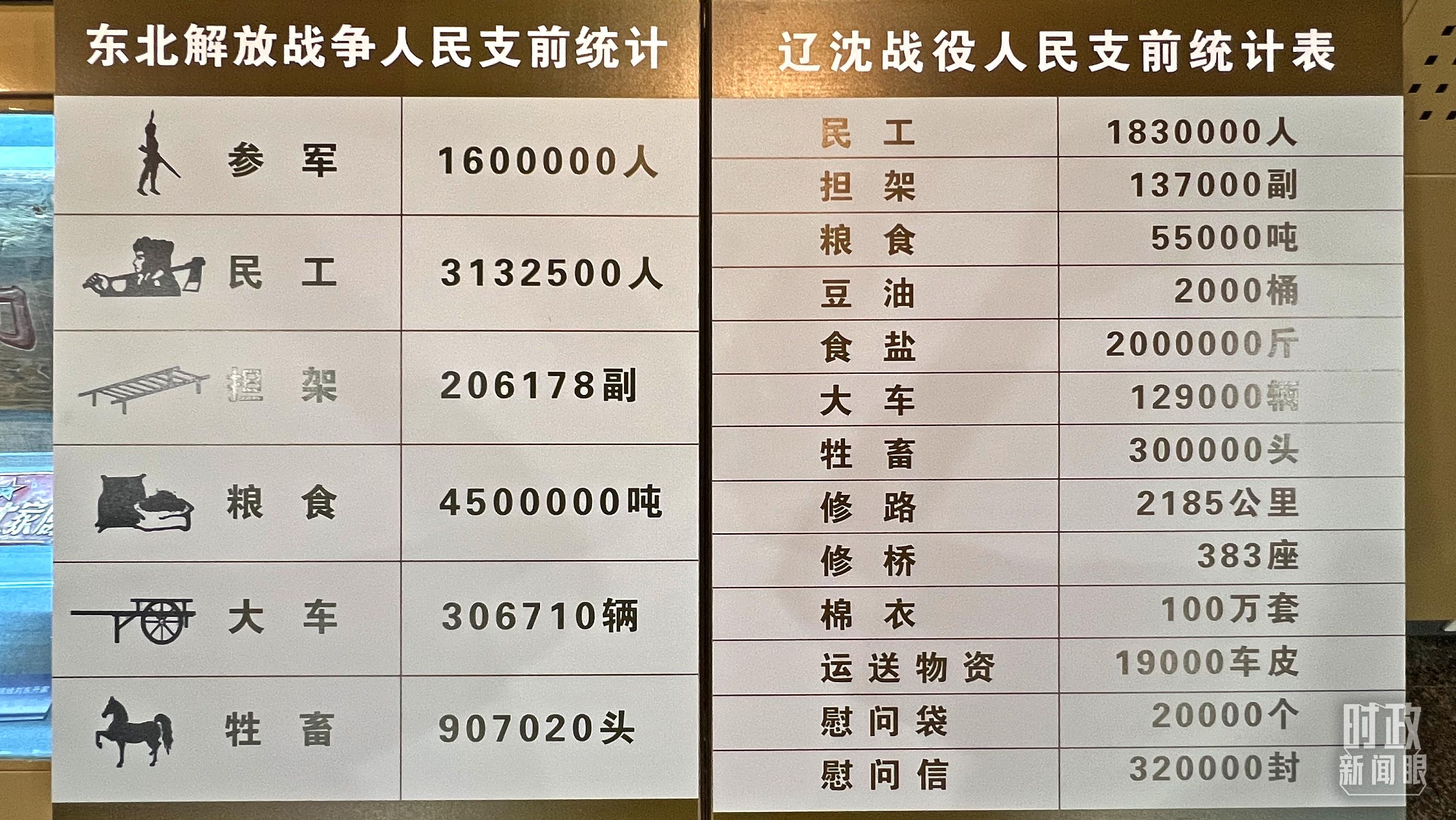△遼沈戰(zhàn)役紀(jì)念館展出,東北解放戰(zhàn)爭和遼沈戰(zhàn)役人民支前統(tǒng)計表。(總臺央視記者邢彬拍攝)
