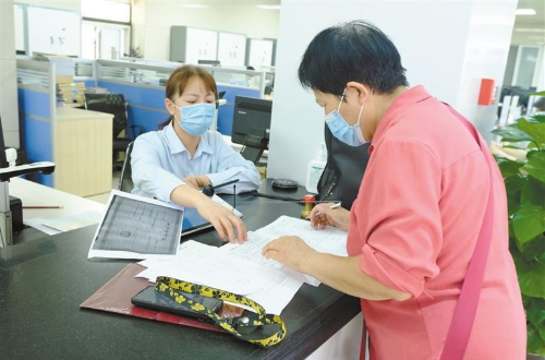 八月二十九日,西安市民王曉華(右)在西安住房公積金管理中心辦事大廳辦理貸款業(yè)務(wù)。 記者 田若楠攝