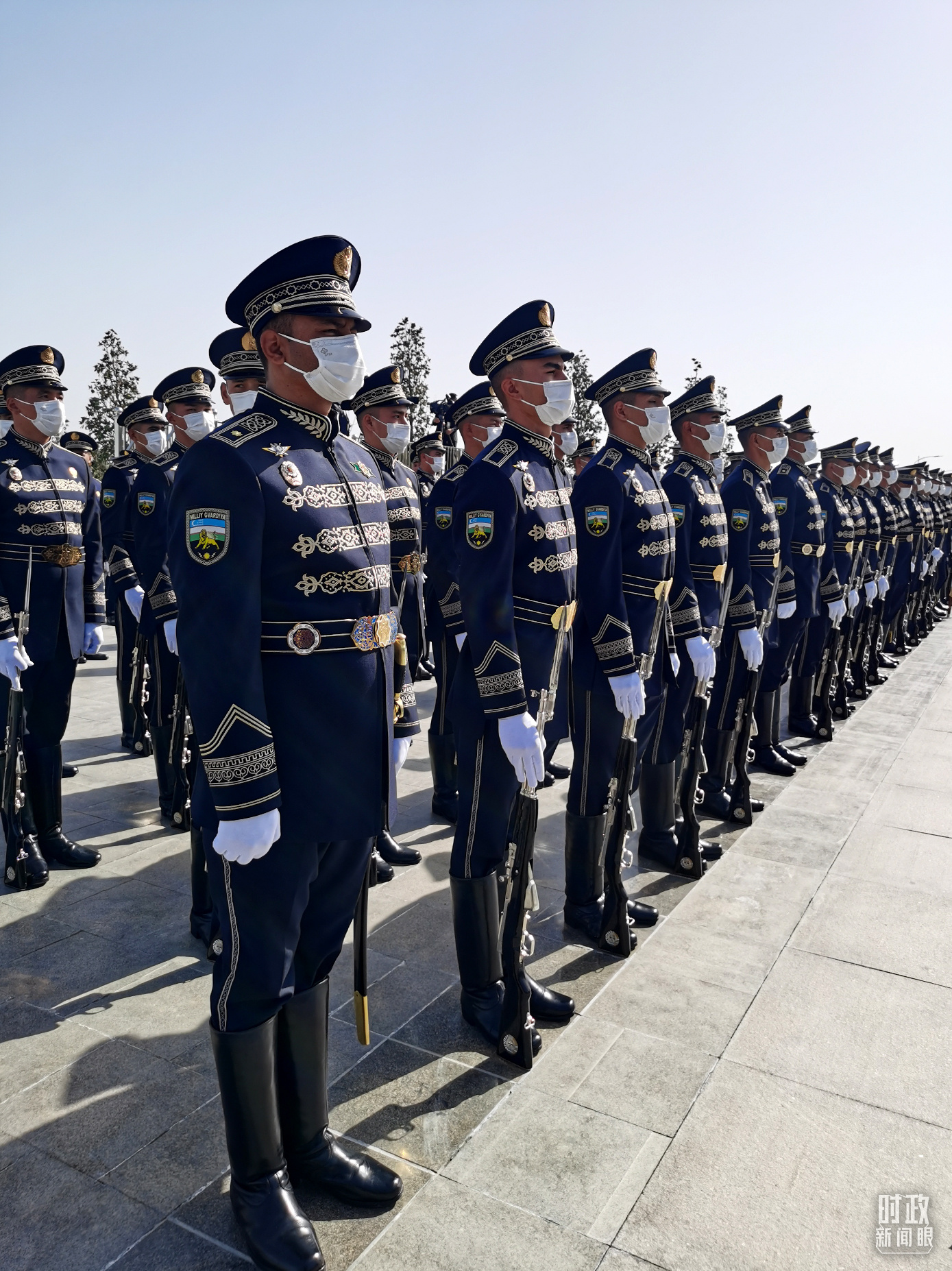 在國際會議中心的北門外廣場,米爾濟(jì)約耶夫總統(tǒng)為習(xí)主席舉行了隆重的歡迎儀式。