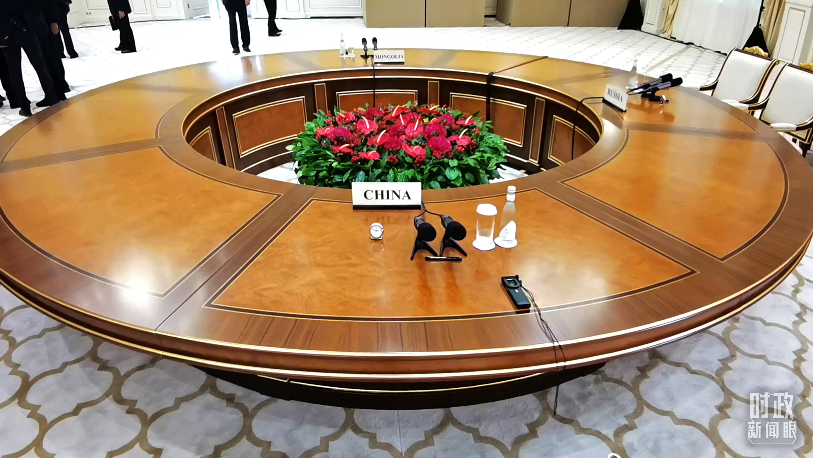 △這是中俄蒙三國元首舉行會晤的大圓桌。(總臺央視記者楊波拍攝)