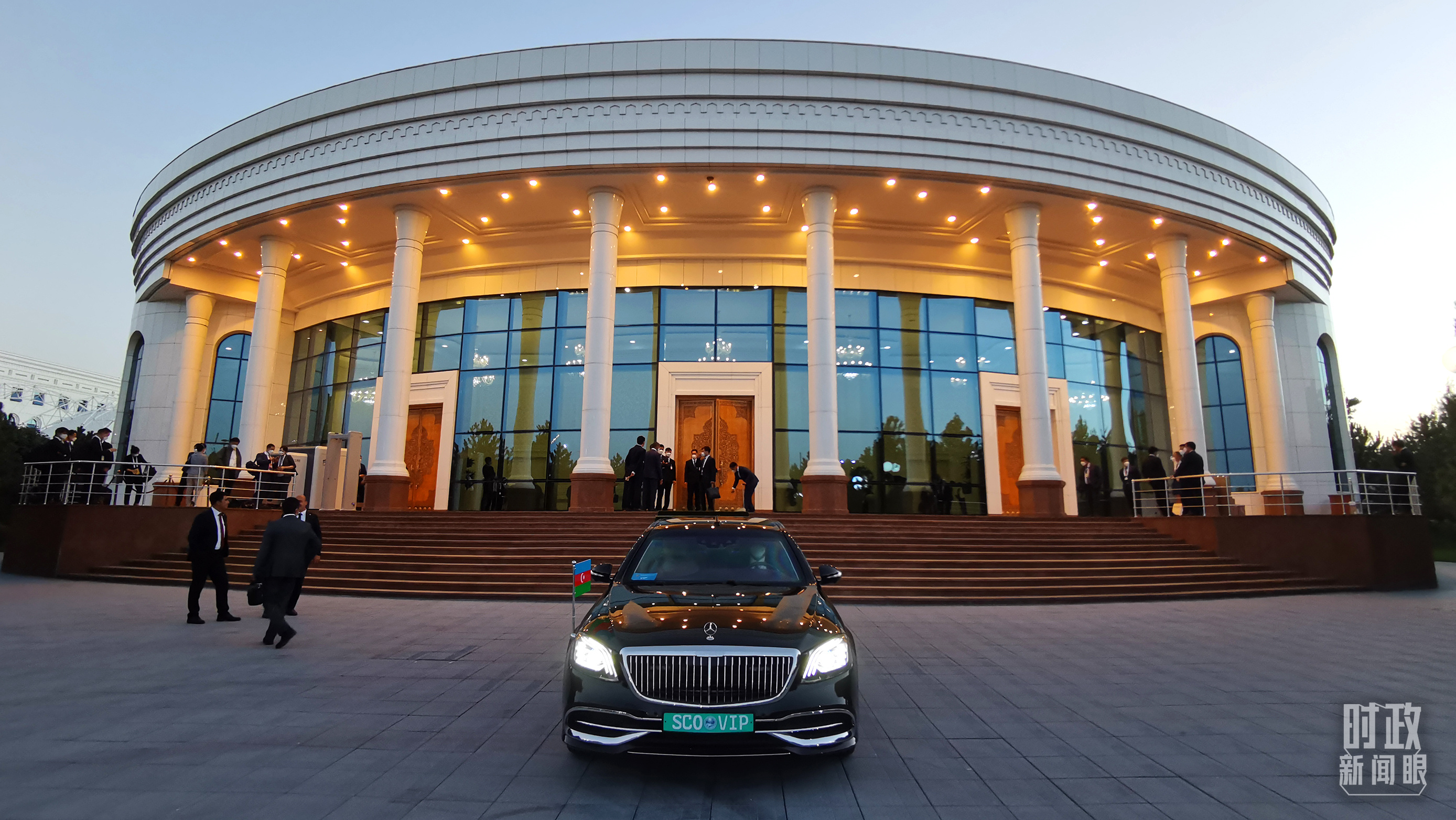 15日上午,習(xí)主席乘車抵達(dá)撒馬爾罕國際會議中心。這座建筑是今年4月新落成的。接待習(xí)主席來訪,是它首次用作國事活動舉辦場地。
