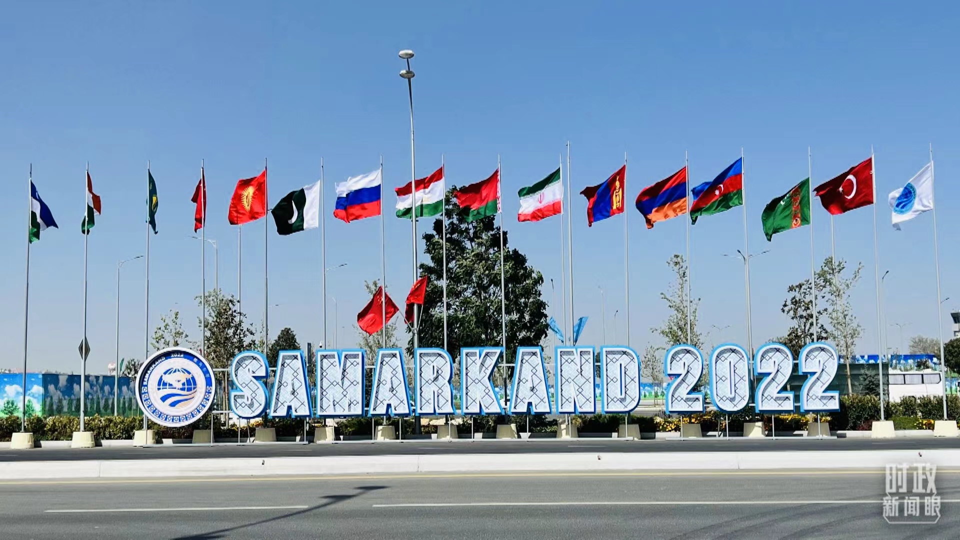 △撒馬爾罕,機場附近的峰會標識。(總臺央視記者楊新禹拍攝)