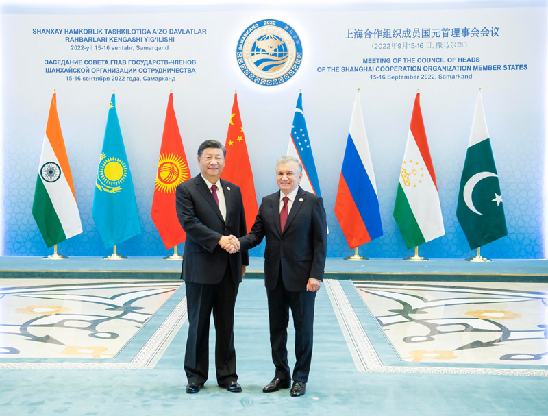習(xí)近平在發(fā)言中高度評價烏茲別克斯坦擔(dān)任輪值主席國期間,在籌備撒馬爾罕峰會等活動、推動本組織發(fā)展方面作出積極努力和重要貢獻(xiàn)。