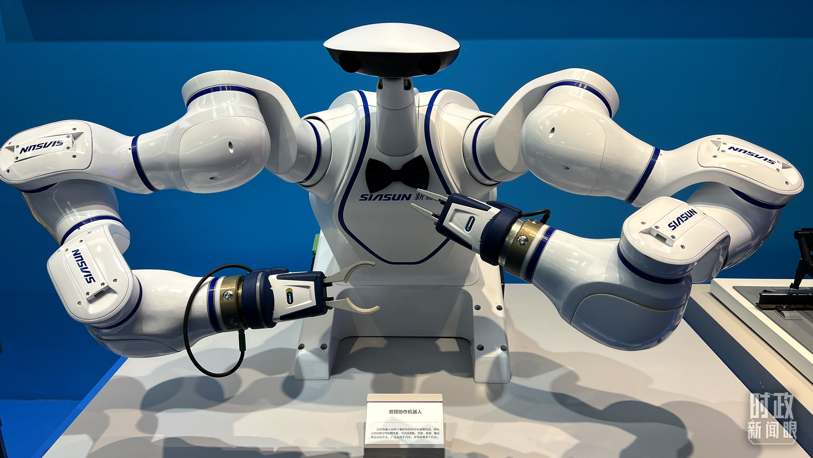 △ 雙臂協作機器人,可完成裝配、涂膠、檢測、搬運等自動化作業(yè)。(總臺央視記者趙化拍攝)