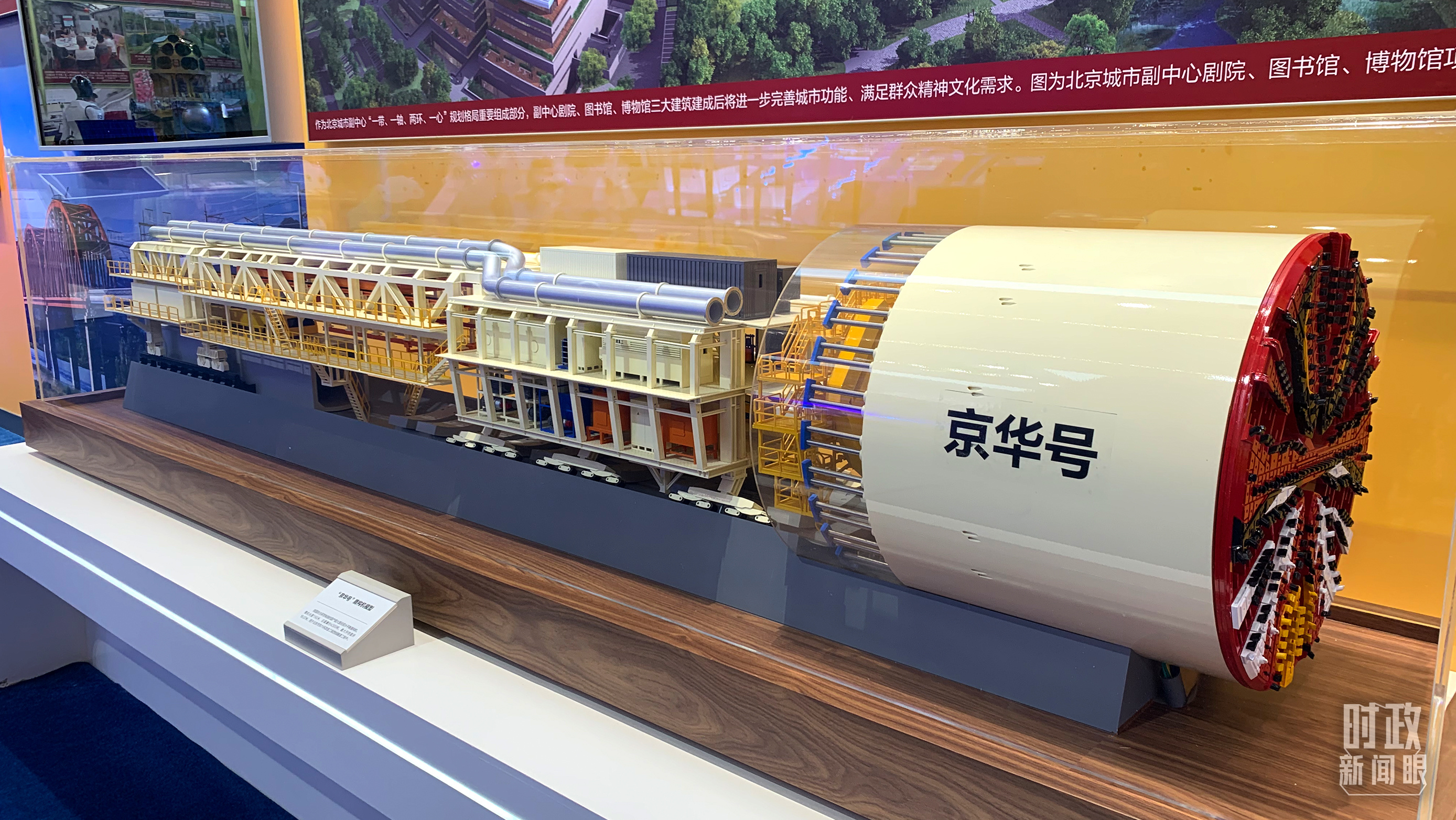 △“京華號”盾構機模型。整機長度150米,用于北京市東六環(huán)改造工程西線隧道工程中。(總臺央視記者許永松拍攝)
