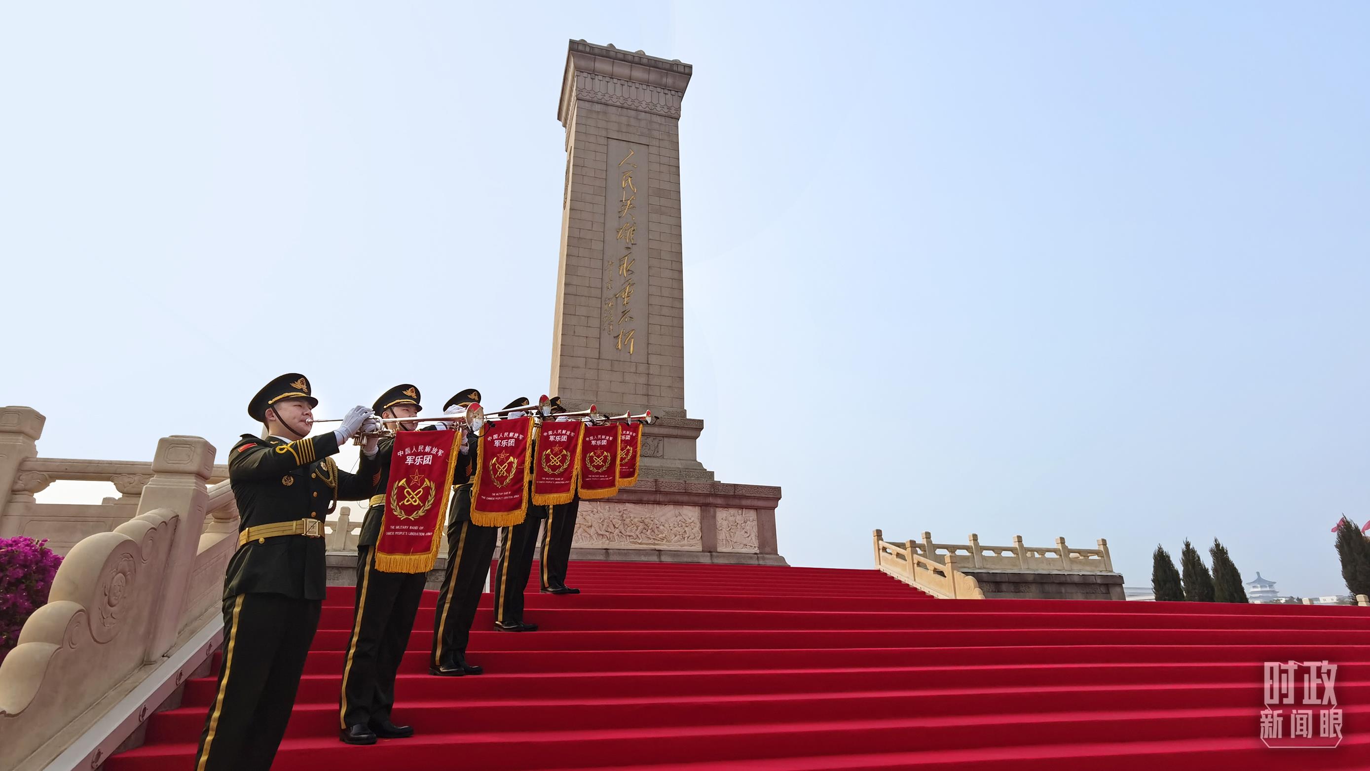△儀式現(xiàn)場(chǎng)的軍樂團(tuán)小號(hào)手,當(dāng)天的《烈士紀(jì)念日號(hào)角》由他們吹響。(總臺(tái)央視記者郭鴻拍攝)