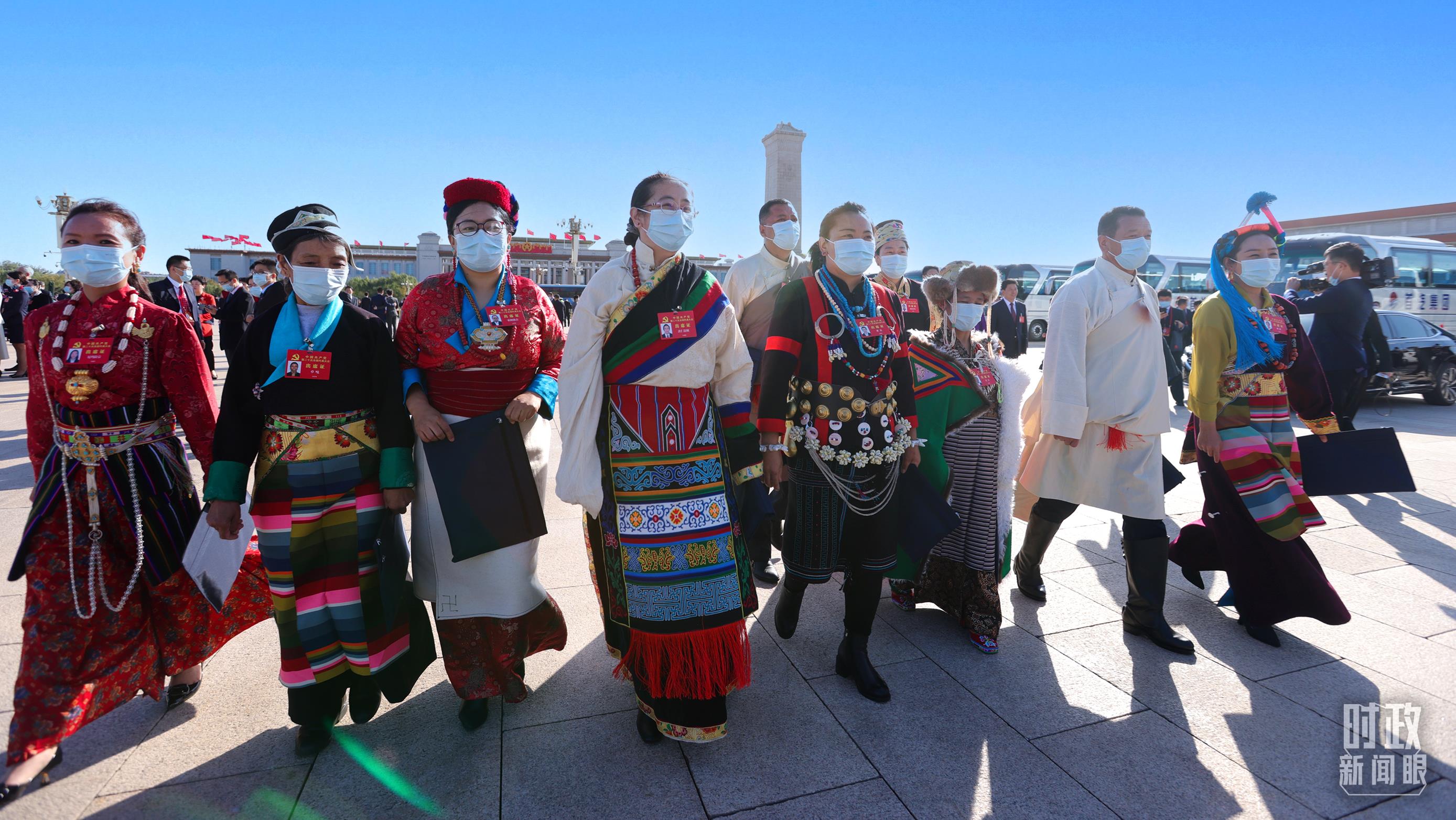 △正在步入會場的西藏代表團代表,左二是卓嘎,去年她獲頒“七一勛章”。(總臺央視記者魏幫軍拍攝)