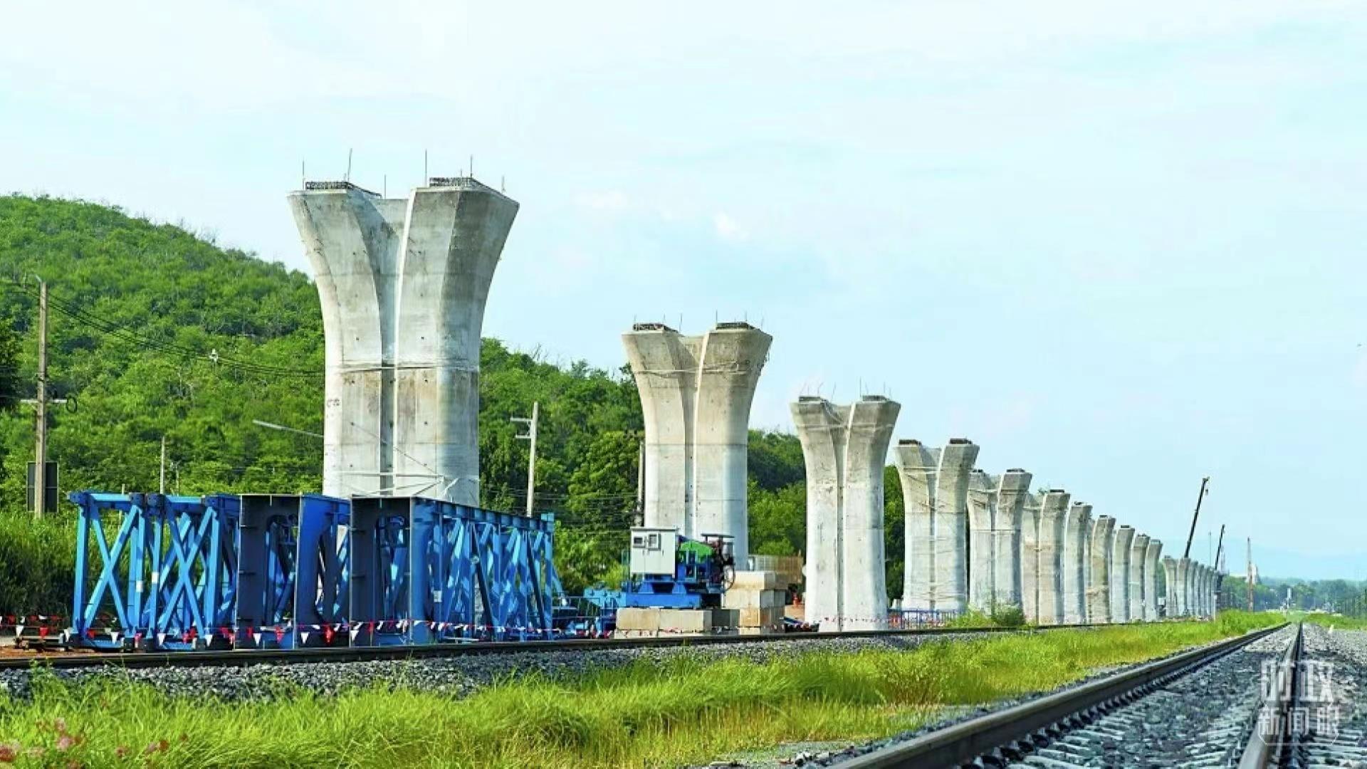 △泰國(guó)呵叻,中泰鐵路施工建設(shè)現(xiàn)場(chǎng)。(資料圖)
