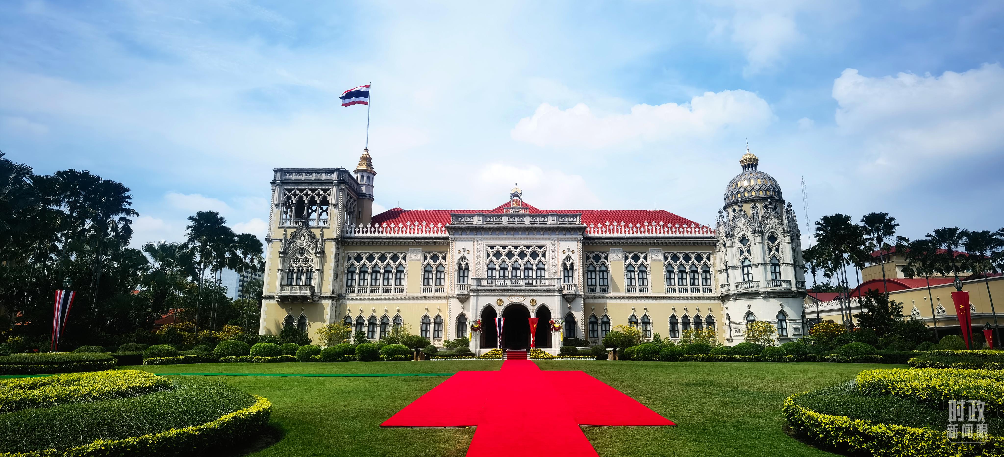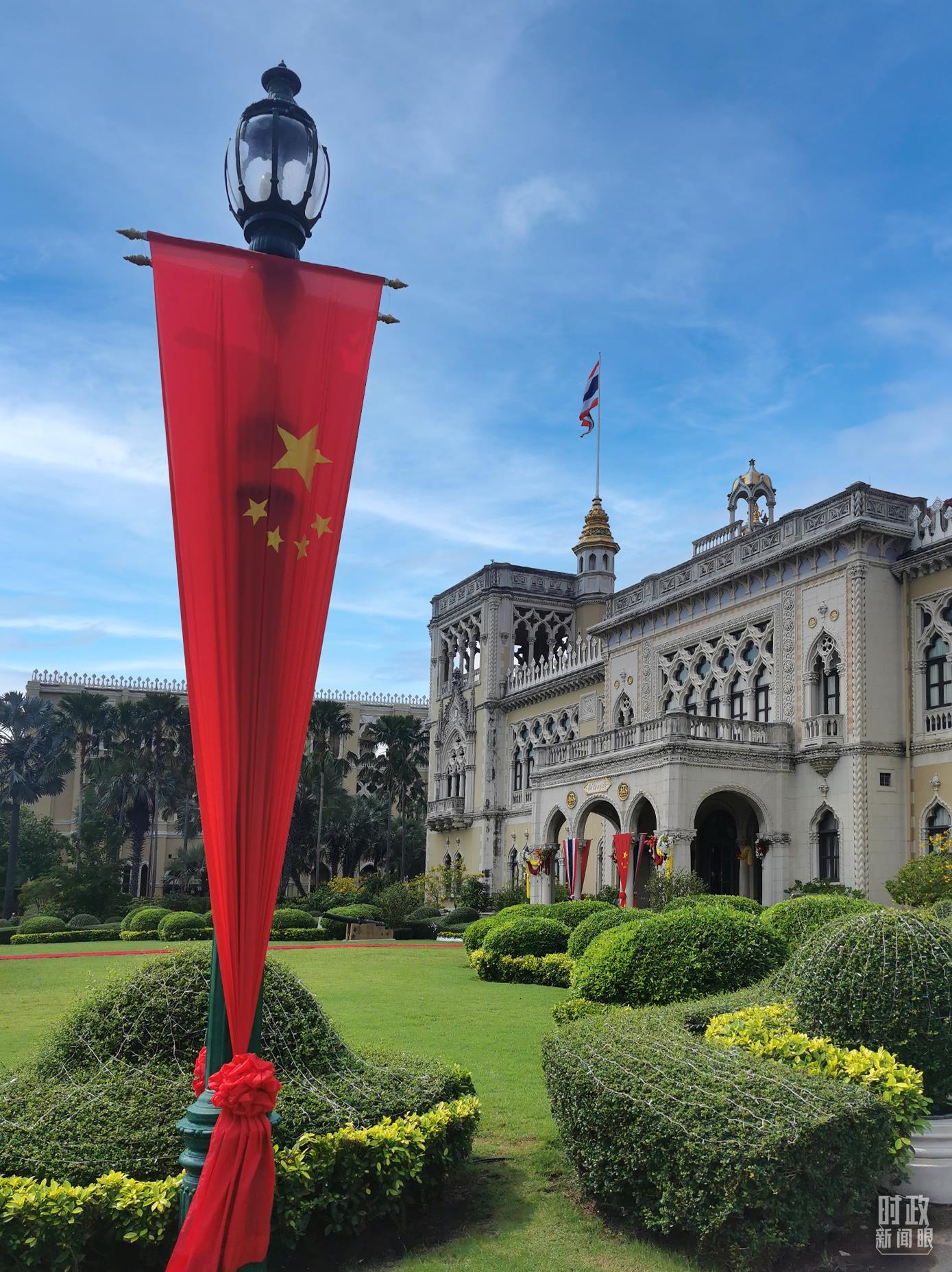 △曼谷總理府前的中國(guó)國(guó)旗。(總臺(tái)央視記者黃京輝拍攝)