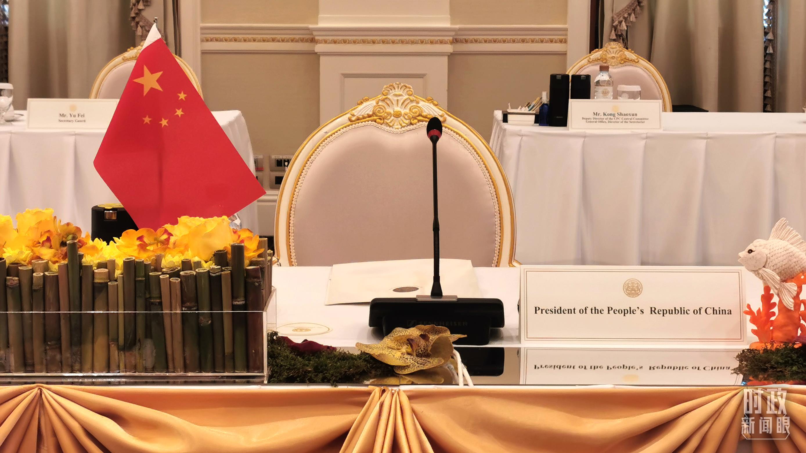 △會(huì)談現(xiàn)場(chǎng),習(xí)近平在這里發(fā)言。(總臺(tái)央視記者黃京輝拍攝)