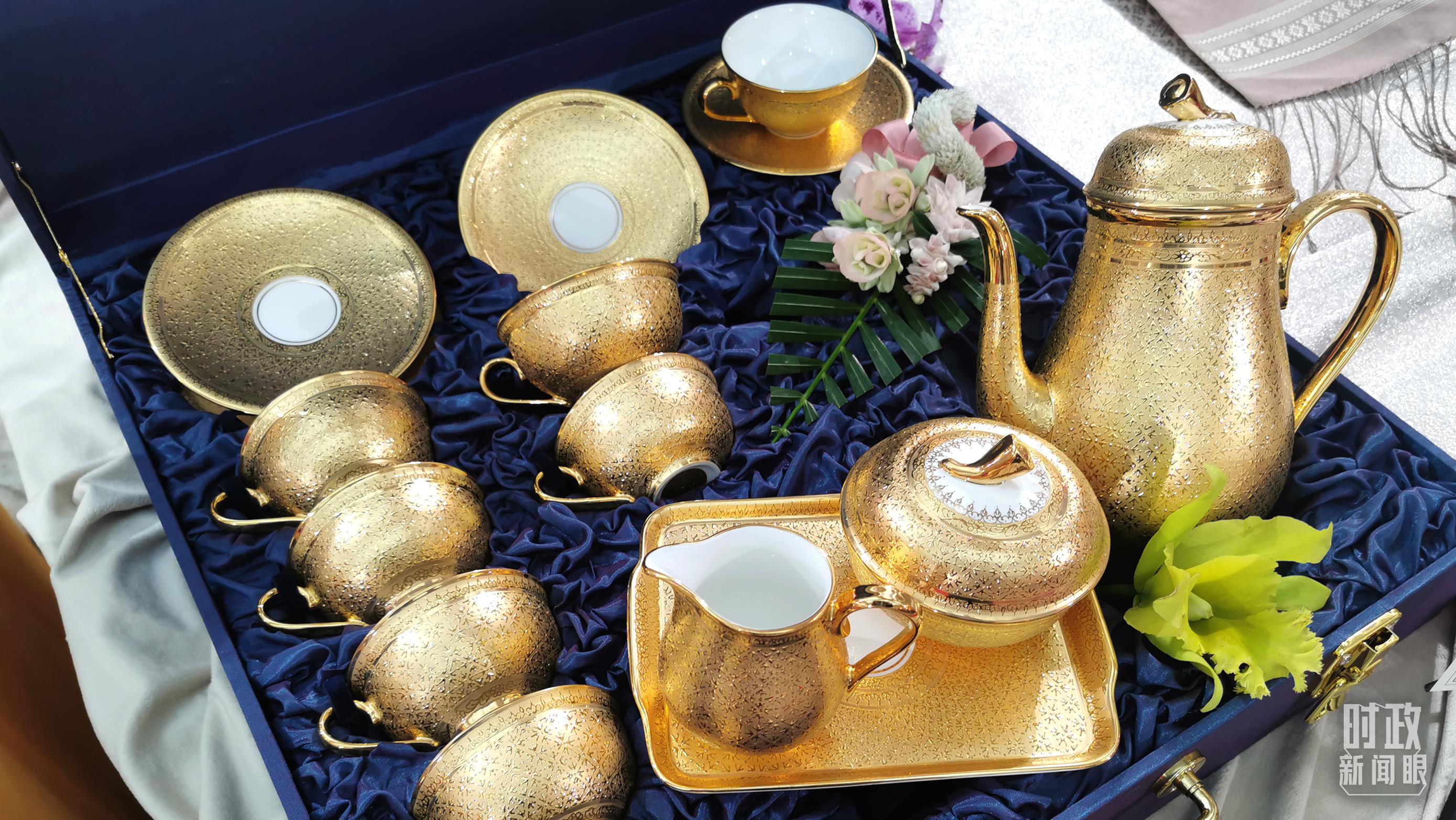 △這是巴育送給習(xí)近平的國(guó)禮之一,鎏金浮雕紋茶具。茶具采用泰國(guó)傳統(tǒng)的五彩瓷工藝制作。(總臺(tái)央視記者黃京輝拍攝)