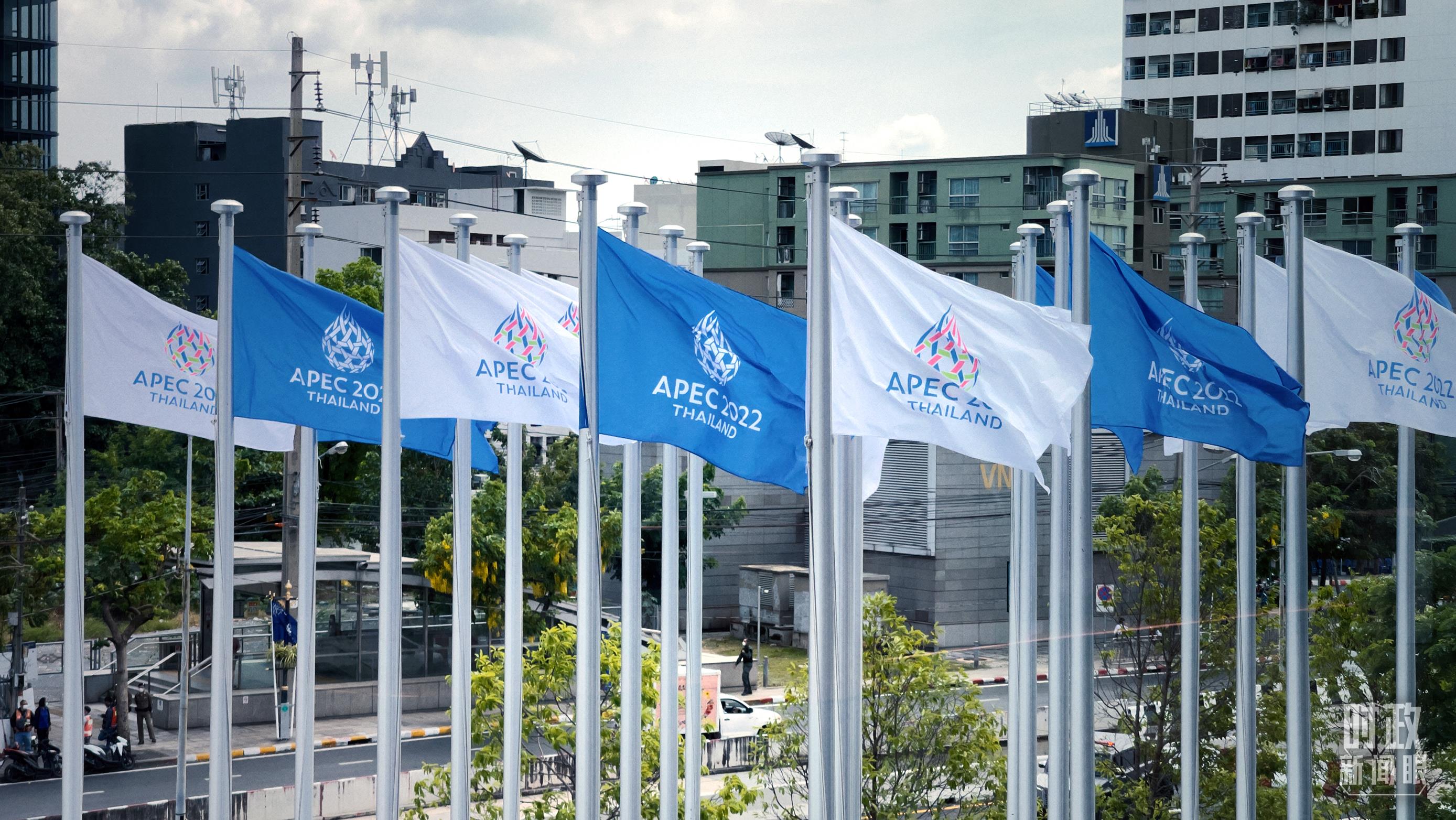 △曼谷,APEC會(huì)旗在空中飄揚(yáng)。(總臺(tái)央視記者鄂介甫拍攝)