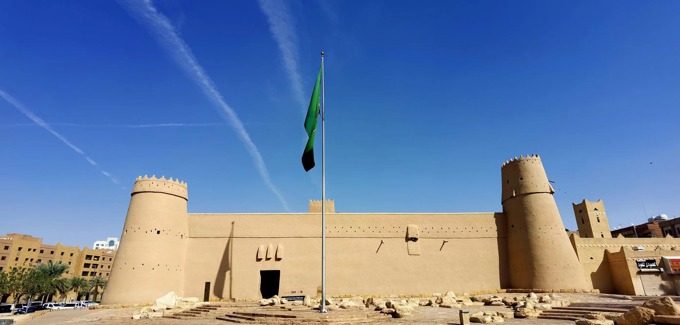 沙特首都利雅得,沙特國家博物館庭院內(nèi)綠樹成蔭。院內(nèi)西南角,一座白色的二層建筑靜靜矗立,因其外形方正而得名“四方宮”。