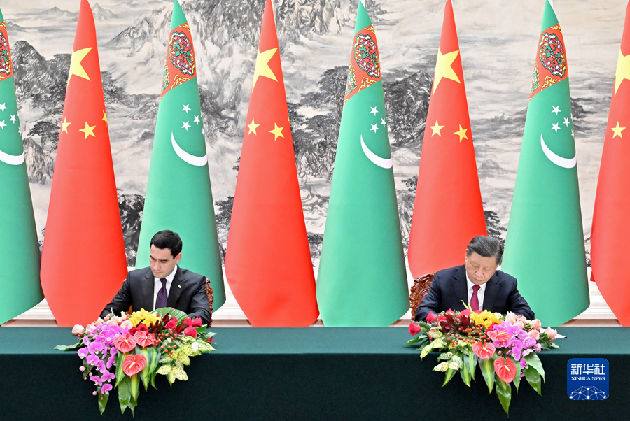 會談后,兩國元首簽署并發(fā)表《中華人民共和國和土庫曼斯坦聯(lián)合聲明》,共同見證簽署“一帶一路”、綠色發(fā)展、數(shù)字經(jīng)濟、衛(wèi)生、文化、體育、新聞媒體、天然氣等領(lǐng)域合作文件。