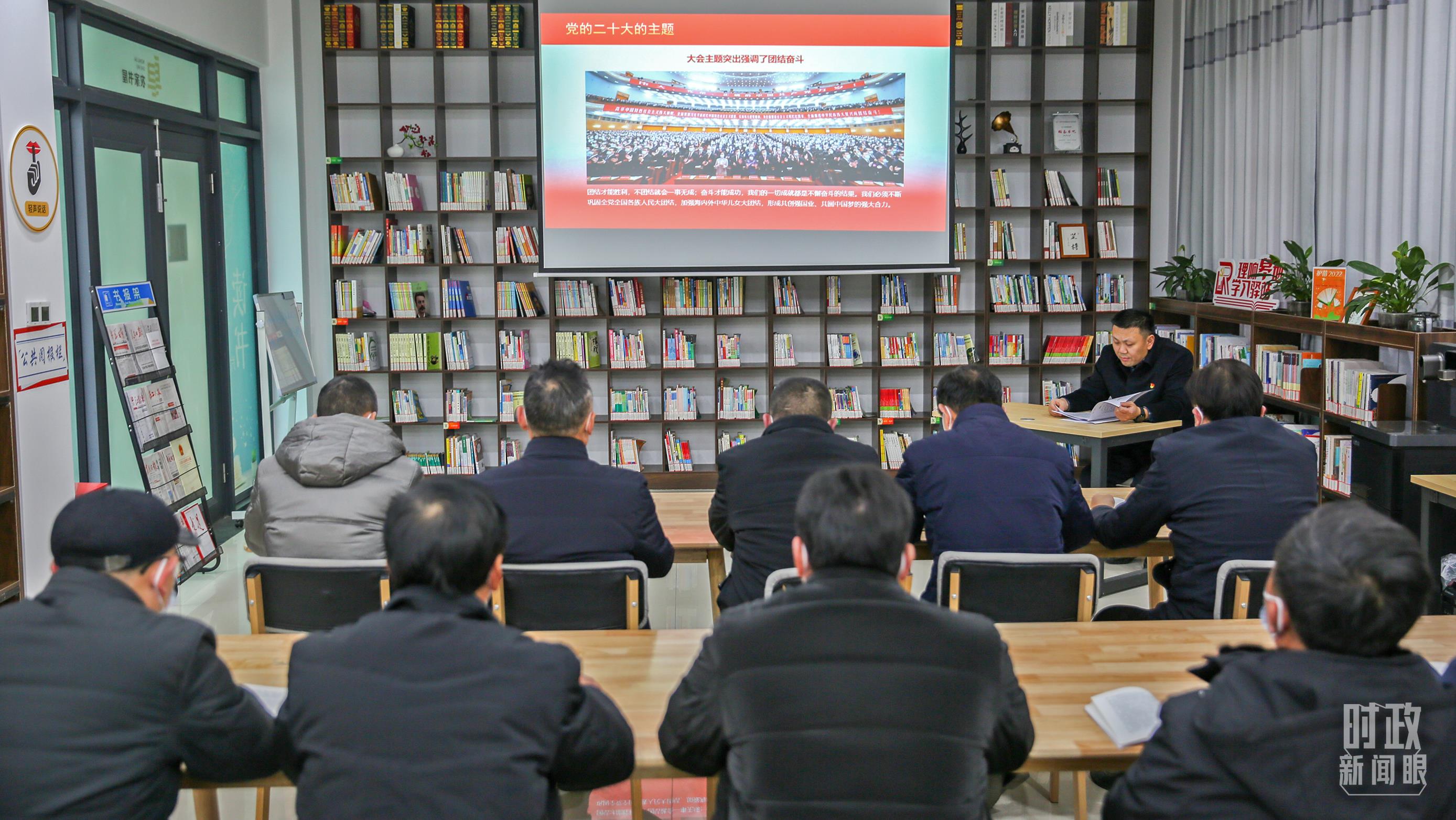 △2023年1月6日,江蘇南通的一座農(nóng)家書屋內(nèi),正在舉辦共讀黨的二十大相關(guān)書籍活動。(圖/視覺中國)