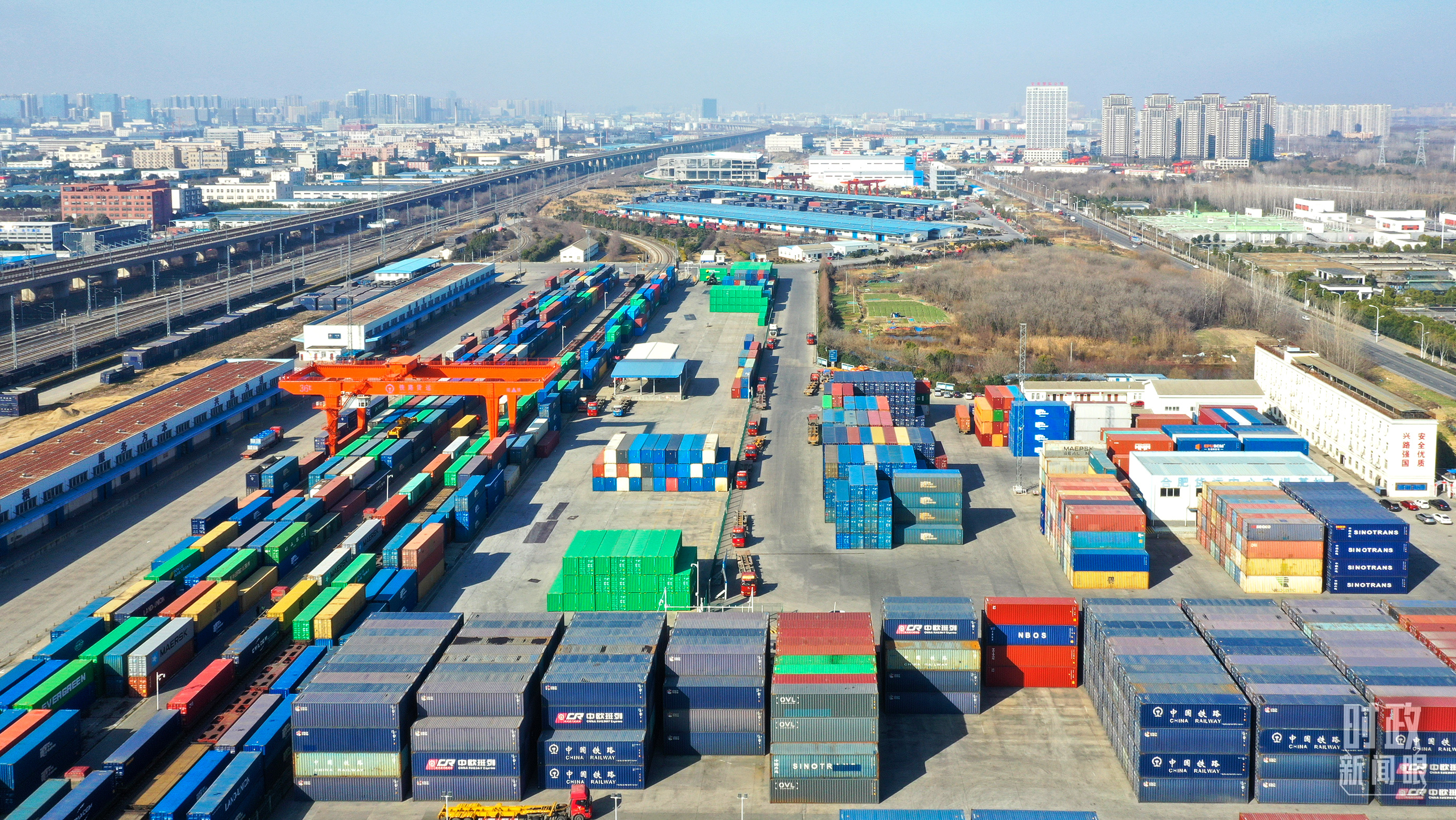 △合肥春節(jié)期間鐵路貨運(yùn)“不打烊”,中歐班列貨運(yùn)集裝箱集結(jié)待發(fā)。(圖/視覺中國)