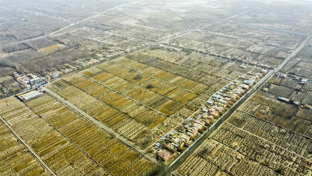 這是2月21日拍攝的新疆和田地區(qū)策勒縣巴什玉吉買村(無(wú)人機(jī)照片)。新華社記者 丁磊 攝