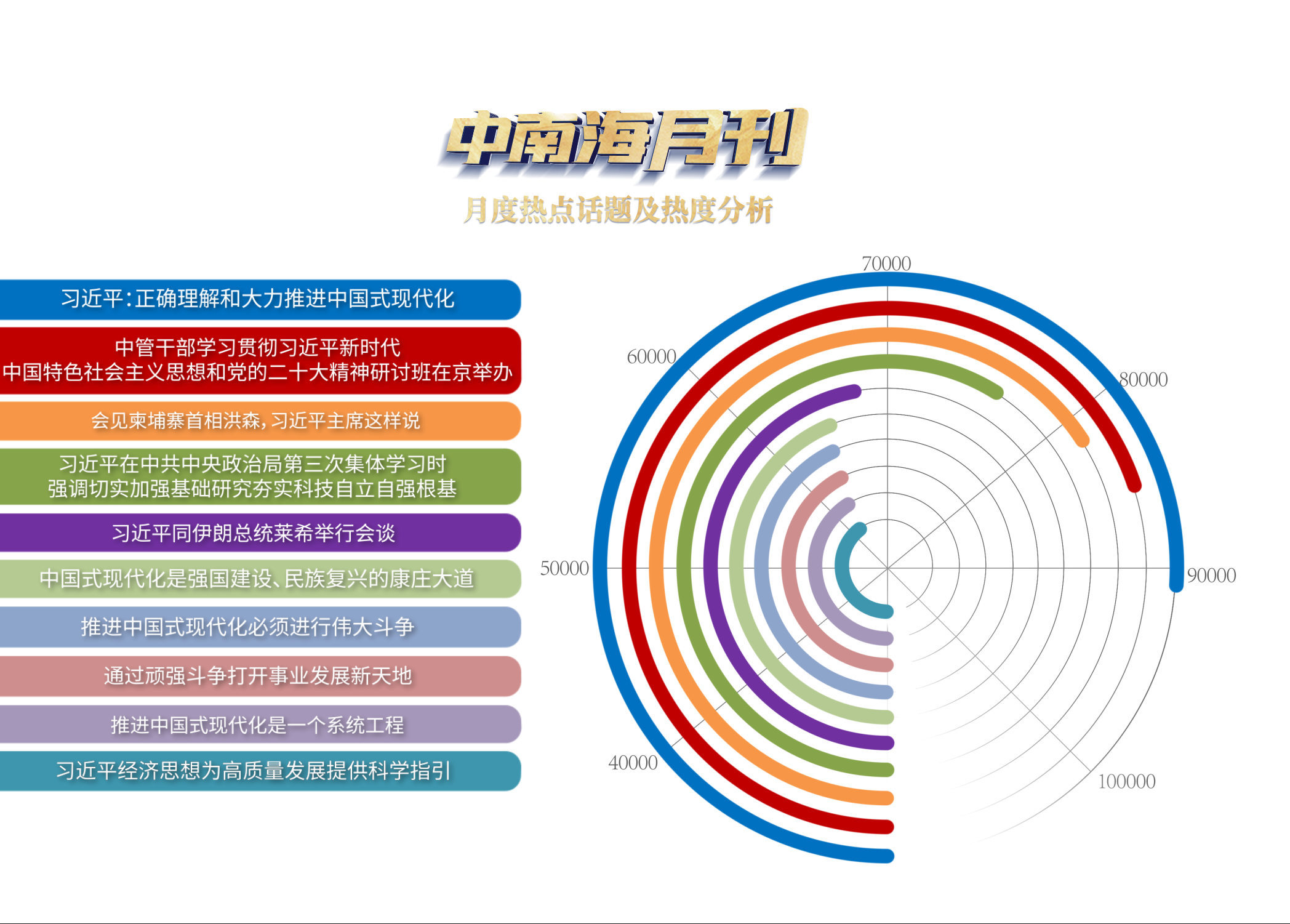 2023年是全面貫徹黨的二十大精神的開局之年,是實施“十四五”規(guī)劃承前啟后的關鍵一年,也是全面建設社會主義現(xiàn)代化國家開局起步的重要一年。央視網(wǎng)“智聞”系統(tǒng)提取分析2023年2月全網(wǎng)時政新聞熱點發(fā)現(xiàn),本月“學習貫徹黨的二十大精神研討班開班式”等相關話題備受網(wǎng)友關注。