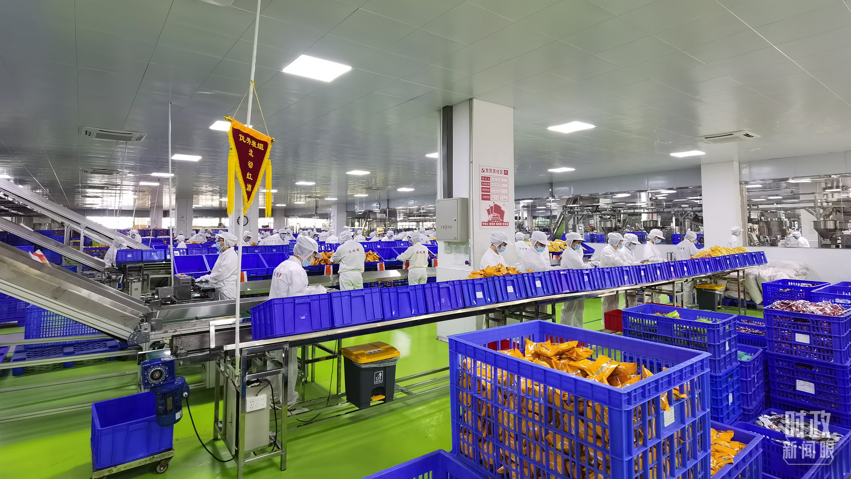 △廣西柳州,工人在螺螄粉生產(chǎn)車間生產(chǎn)線上包裝袋裝螺螄粉。2021年,習(xí)近平到柳州螺螄粉生產(chǎn)集聚區(qū)調(diào)研,鼓勵(lì)民營(yíng)企業(yè)大膽地去發(fā)展。(總臺(tái)央視記者郭鴻拍攝)