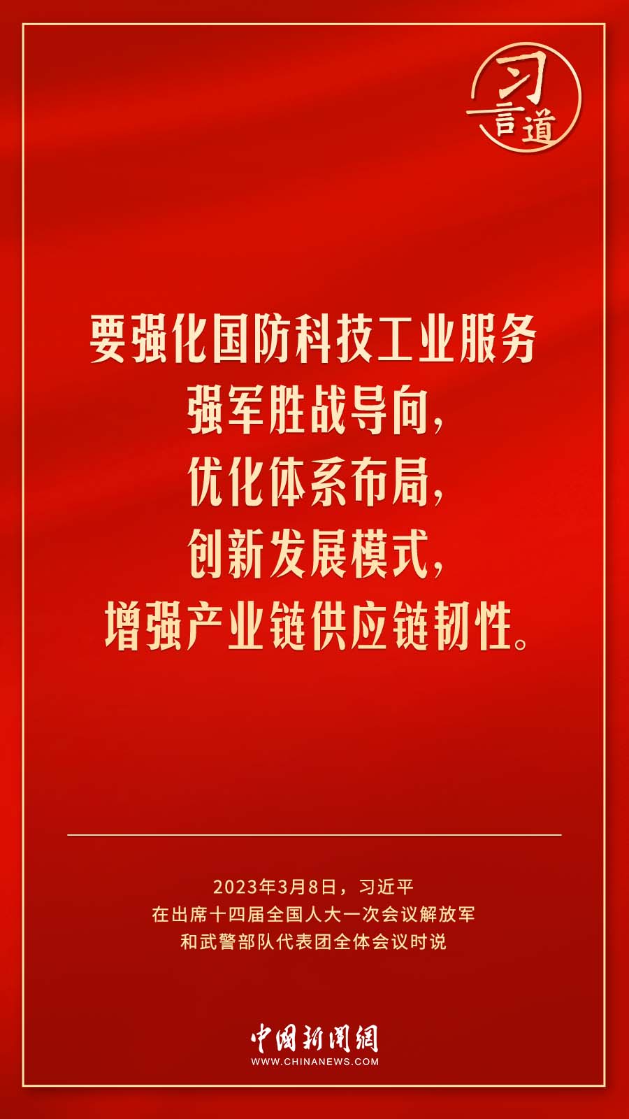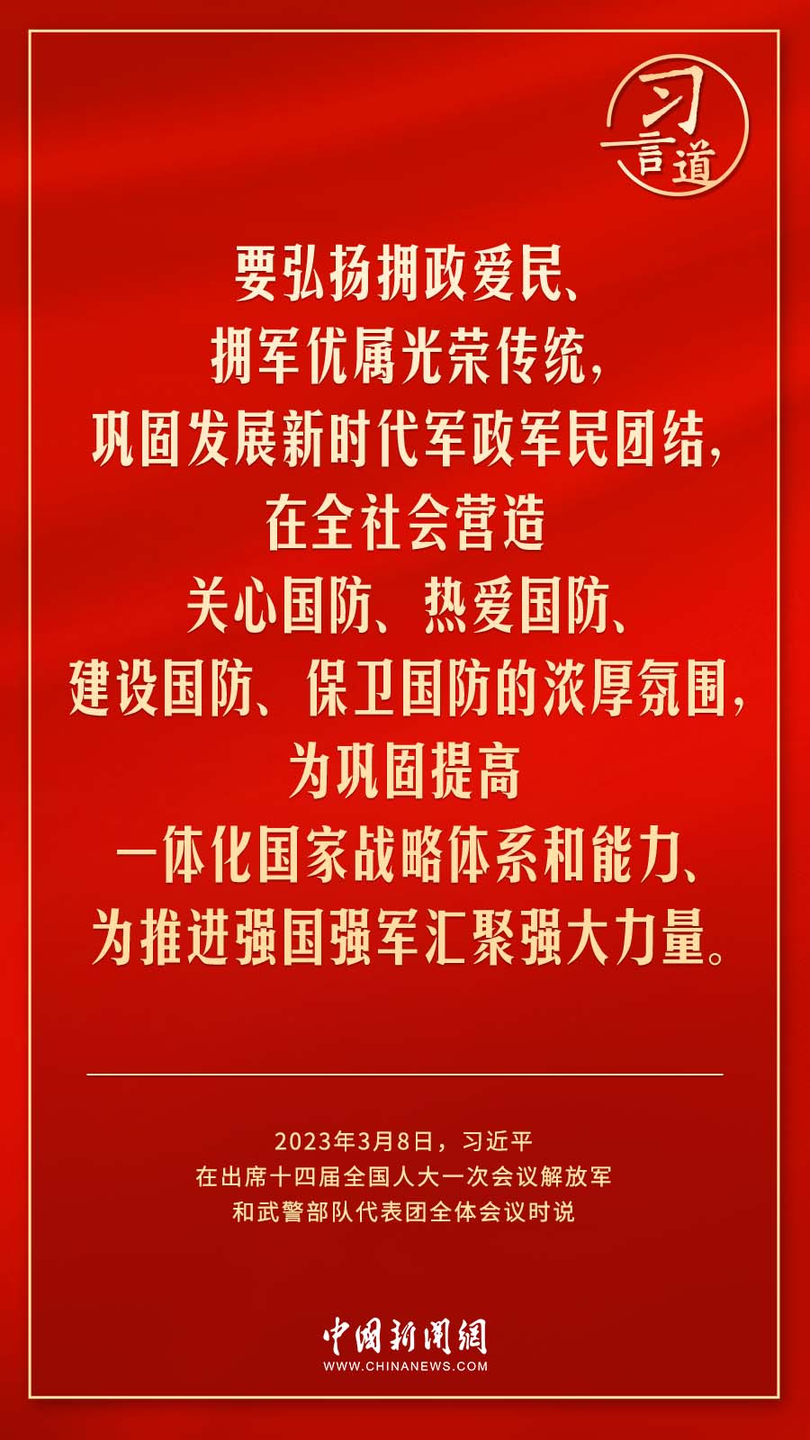 中共中央總書(shū)記、國(guó)家主席、中央軍委主席習(xí)近平8日下午在出席十四屆全國(guó)人大一次會(huì)議解放軍和武警部隊(duì)代表團(tuán)全體會(huì)議時(shí)說(shuō)——