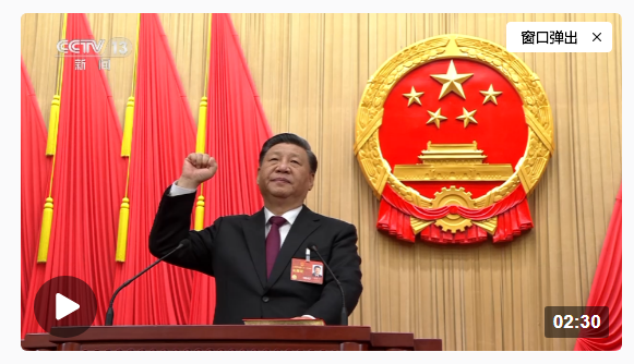 獨(dú)家視頻丨新當(dāng)選的國家主席、中央軍委主席習(xí)近平進(jìn)行憲法宣誓