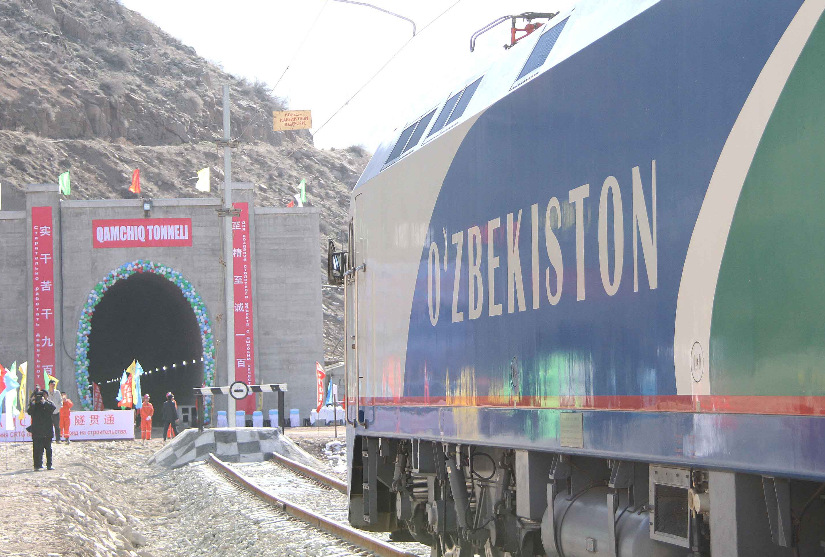 2016年2月27日,一列專列停在烏茲別克斯坦安格連-帕普鐵路卡姆奇克隧道進口。中國政府優(yōu)買項目、中鐵隧道集團承擔(dān)的中亞最長隧道——烏茲別克斯坦安格連-帕普鐵路卡姆奇克隧道2月27日全隧貫通。新華社記者 沙達提 攝